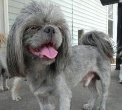 | BLUE is solid blue in coloring with a blue nose and he weighs seven pounds. He makes the most beautiful puppies and does carry the blue trait. He is definitely a lover, not a fighter. At this time he has fathered multiple litters. A solid blue is the rarest color a Shih Tzu comes in. |